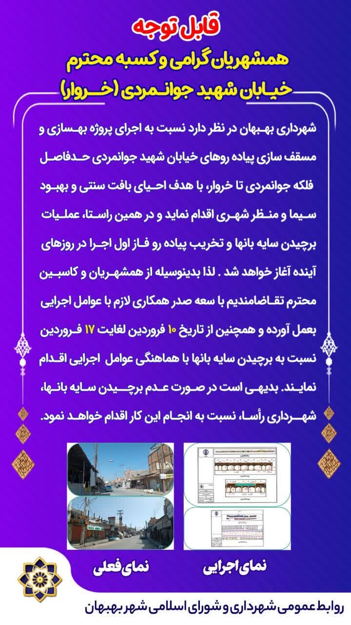 *قابل توجه همشهریان گرامی و کسبه محترم خیابان شهید جوانمردی*