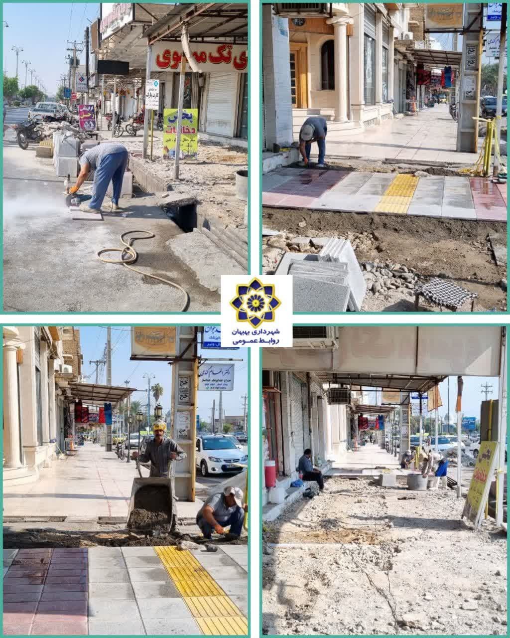 👈یکسان سازی و همسان سازی پیاده رو خیابان پیروز(از بید بلند تا فلکه پرستار)