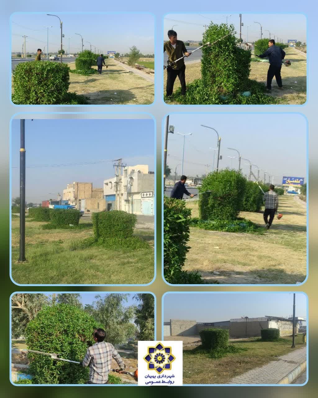 🔽صبح روز شنبه مورخه نوزدهم آبان ماه ۱۴۰۳در راستای حفظ و نگهداری فضای سبز و مسئولیت های اجتماعی،نیروهای فضای سبز شهرداری بهبهان،عملیات هرس و اصلاح درختان،پاک سازی،علف زنی و نظافت باند سلامت(از ابتدای بلوار امام خمینی به طرف میدان ارجان)بصورت رفت و برگشت ،در دستور کار قرار گرفت .