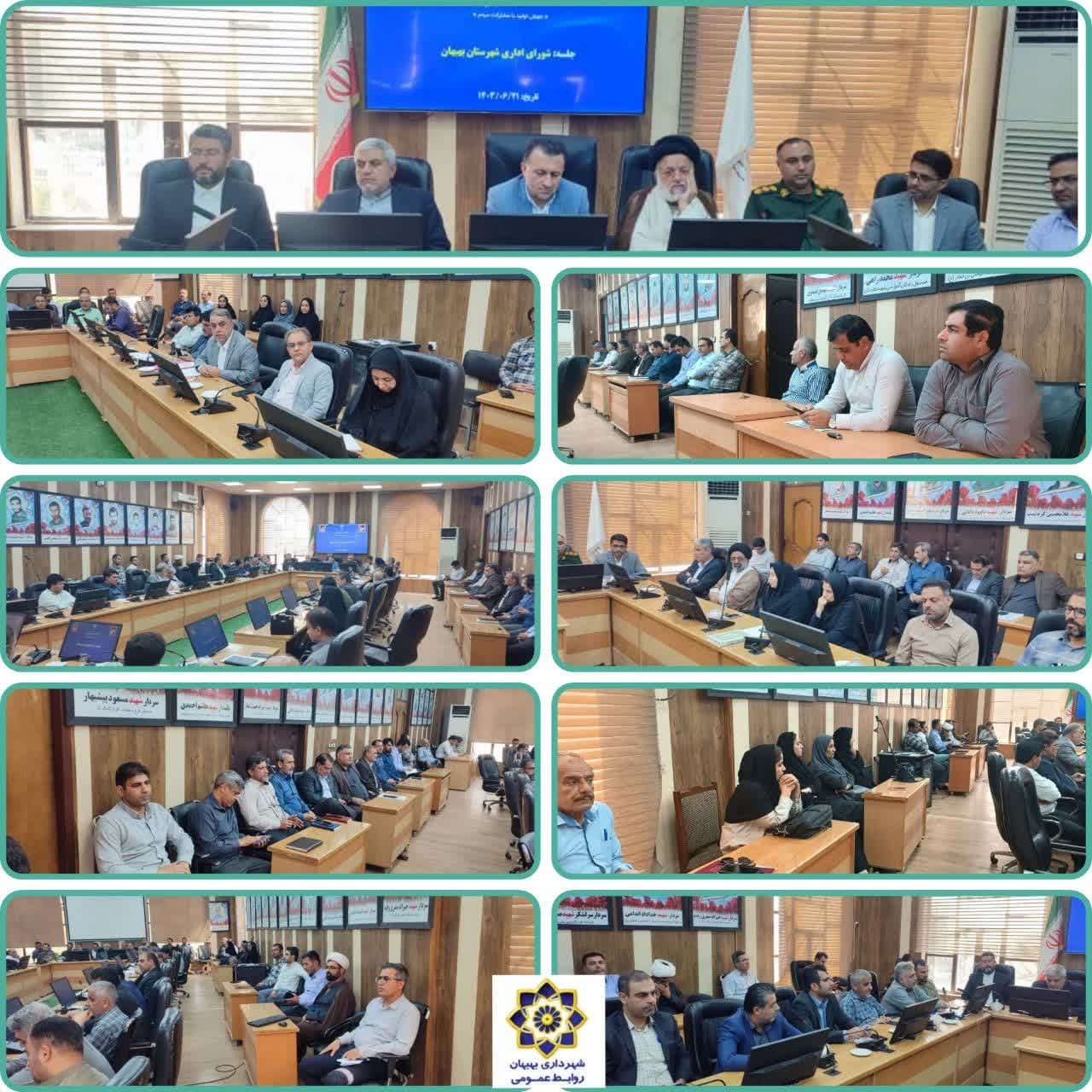 🔽صبح روز چهارشنبه مورخه ۲۱شهریورماه ۱۴۰۳ جلسه شورای اداری شهرستان باحضور نماینده مجلس ،امام جمعه ،فرماندار،رییس شورای اسلامی شهر ،معاونت شهردار وسایر مدیران اداری شهرستان بهبهان در سالن جلسات فرمانداری برگزار شد.