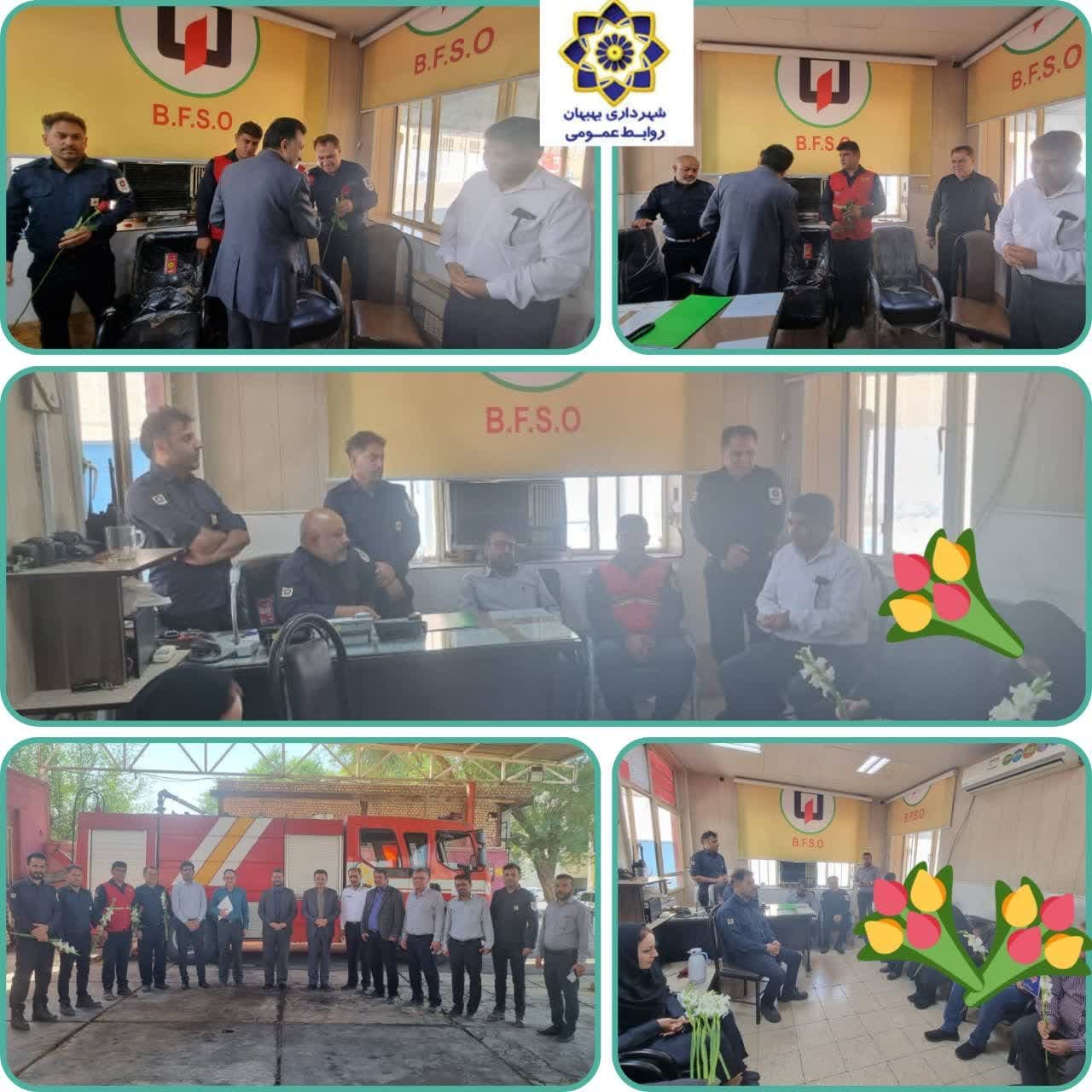 🔽بمناسبت روز آتش نشانی و خدمات ایمنی ،از زحمات شبانه روزی این عزیزان همیشه در صحنه تجلیل و به رسم ادب و احترام هدیه ای و شاخه گلی تقدیم شان نمودند .