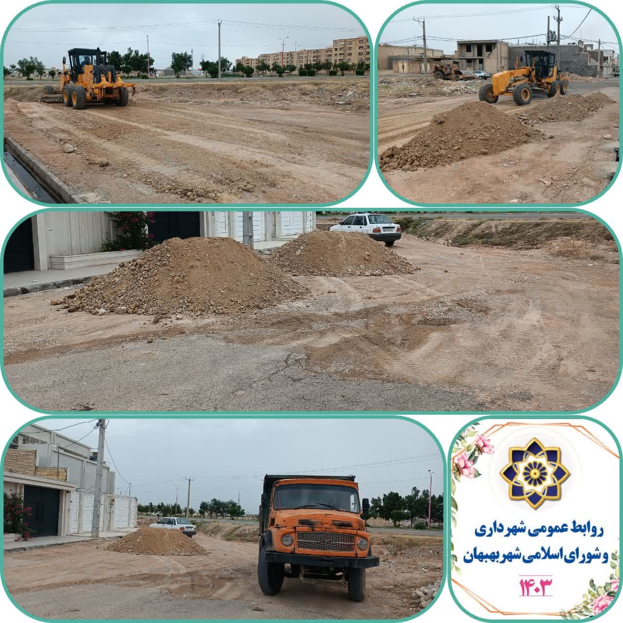 عملیات بهسازی و زیرسازی کوچه های متصل به خیابان سردار شهید علی مومن طیبی، توسط عوامل عمرانی و موتوری شهرداری بهبهان در راستای پایان دادن به معابر خاکی سطح شهر