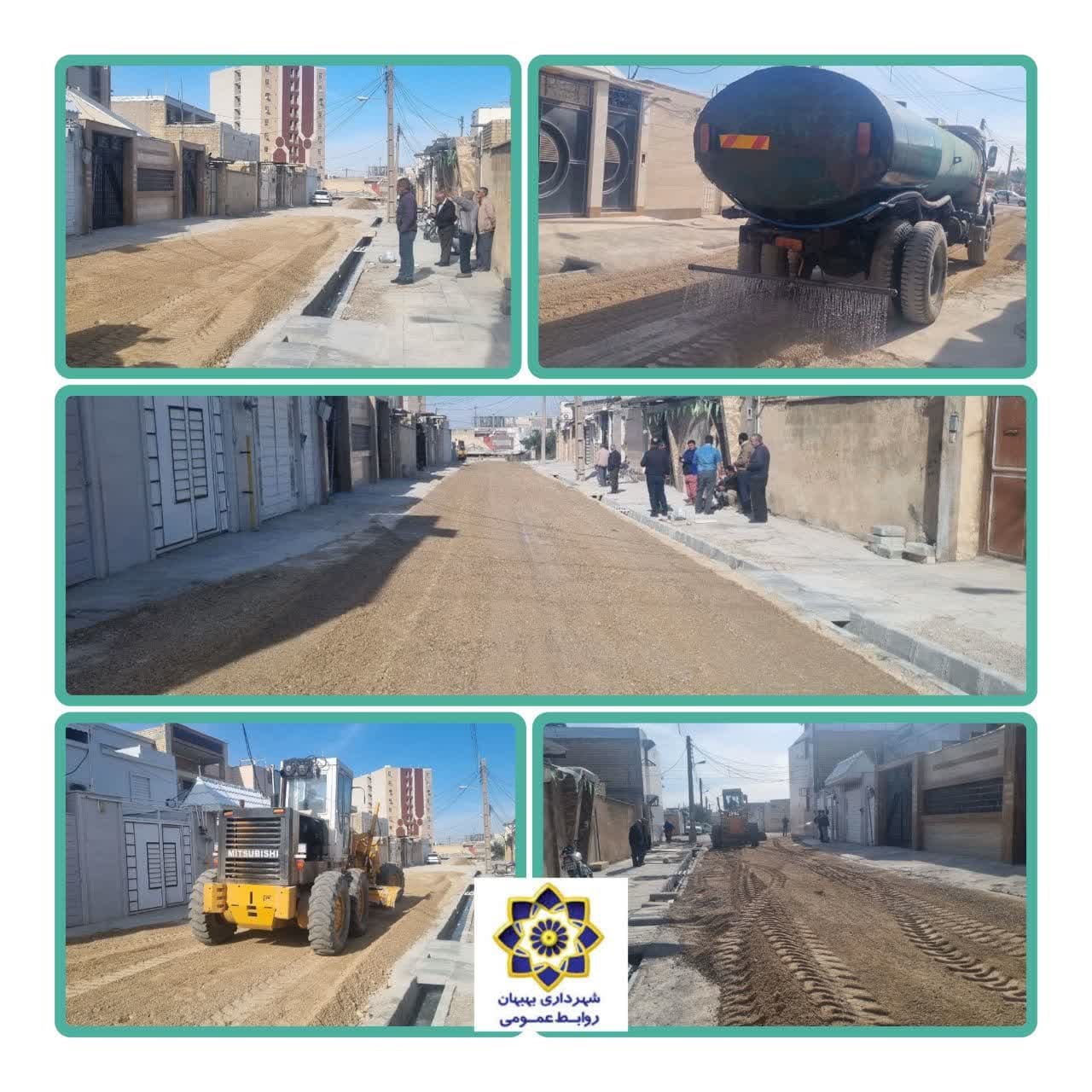 هم اینک عملیات بهسازی و زیر سازی کوچه شهید معماریان واقع در منطقه پانصد دستگاه جنب مدرسه ابتدایی پوشینه بافت توسط شهرداری بهبهان ،در راستای رسیدگی ویژه به معابر خاکی سطح شهر