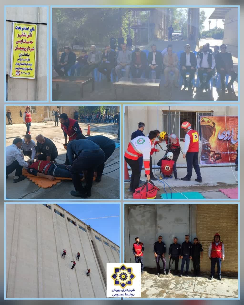 🔽صبح روز یک شنبه مورخه هجدهم آذر ماه ۱۴۰۳ ،مانور امداد و نجات آتش نشانی و خدمات ایمنی شهرداری بهبهان با همکاری هلال احمر ،اورژانس ،تیم امداد و نجات شهدای بهبهان و هییت کوهنوردی شهرستان در محوطه سیلوی بهبهان برگزار شد.