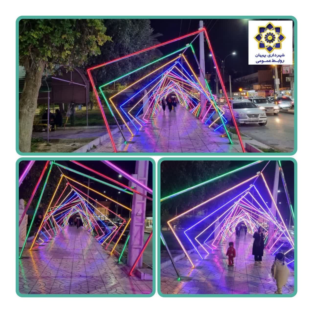 مراحل پایانی ،اجرای نصب تونل نوری در پیاده روی باغ ملی توسط نیروهای زحمت کش حوزه زیباسازی شهرداری بهبهان