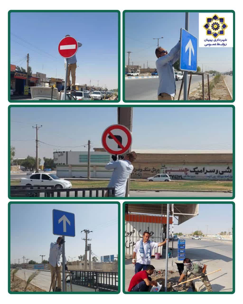 🔷به منظور استانداردسازی ،ایمن سازی،در راستای کنترل ترافیک و سایر موارد در این خصوص ،تابلوهای علائم راهنمایی و رانندگی در برخی از نقاط حادثه خیز و ضروری توسط نیروهای واحد زیباسازی شهرداری بهبهان نصب شد.