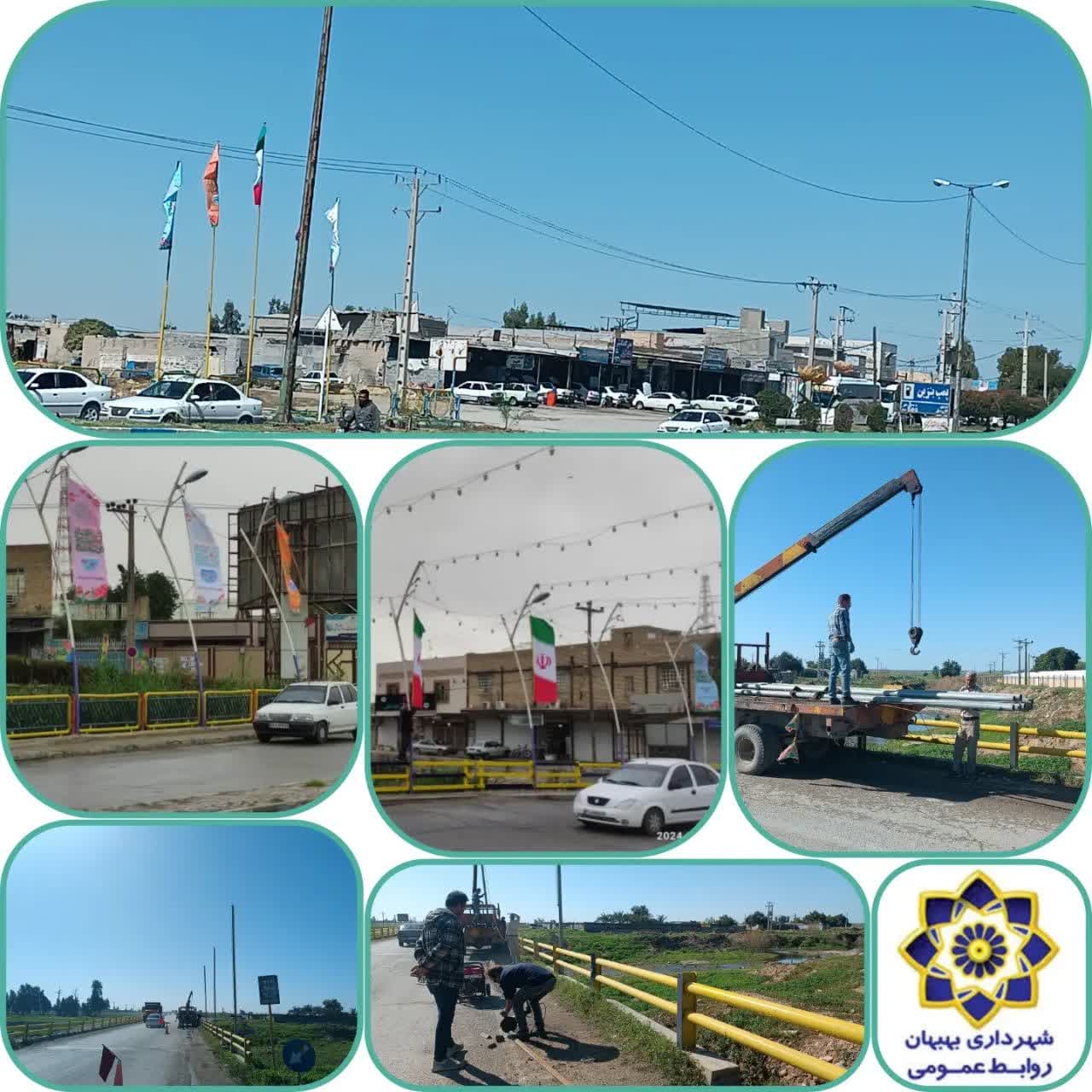 نصب پایه های فلزی جدید ۶متری بهمراه پرچم های اهتزاز ۳متری،تبریک سال جدید (نوروز)در نقاط مختلف سطح شهر توسط نیروهای زیباسازی شهرداری بهبهان صورت گرفت.