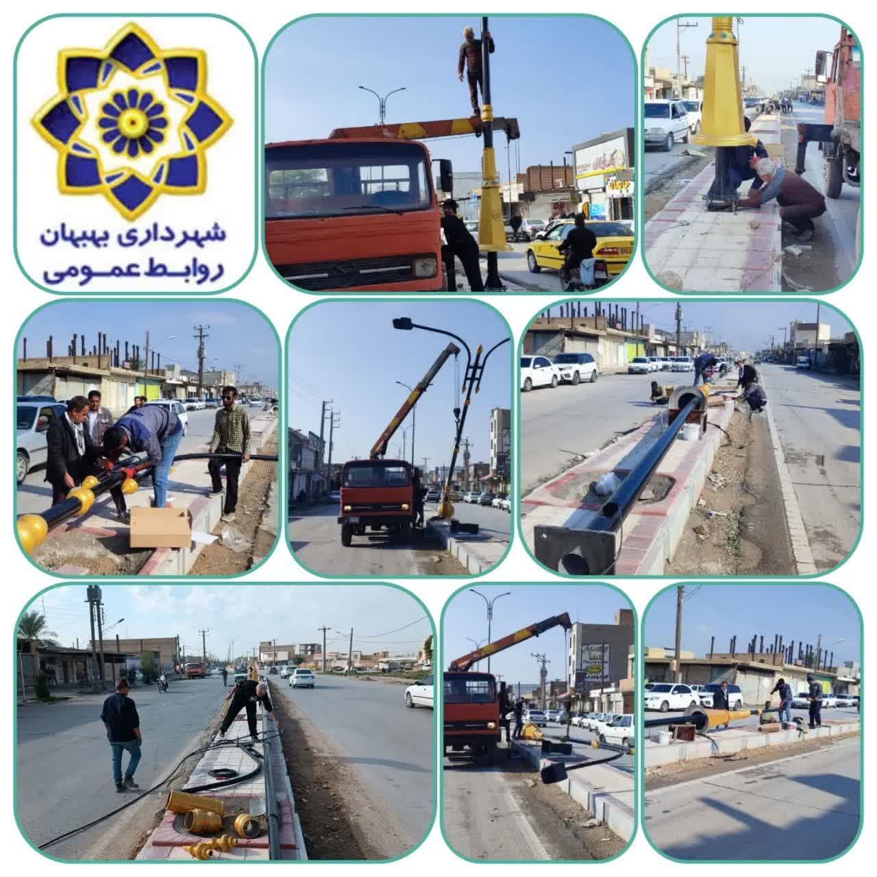 🔽سرپرست شهرداری بهبهان با هدف زیباسازی سیما و منظر شهری و رفاه حال شهروندان ،توسط نیروهای پر تلاش واحد زیباسازی با نظارت مسئول این مجموعه ، اقدام به نصب پایه چراغ های فانتزی بلوار سپهبد شهید حاج قاسم س ل ی م ا ن ی(از میدان قدس تا میدان امام حسین ع)_جاده سیمان نمودند.