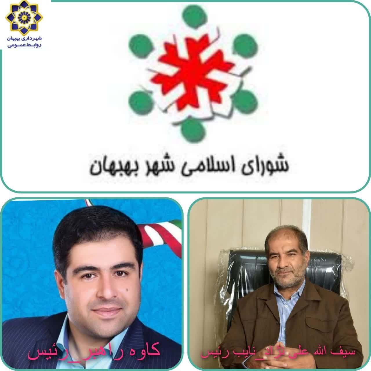 🔽در اجرای ماده ۱۷و۱۸قانون تشکیلات ،وظایف و انتخابات شوراهای اسلامی کشور و انتخاب شهرداران مصوب ۱۳۷۵و اصلاحات بعدی آن و ماده ۳ آئین نامه اجرایی تشکیلات ،انتخابات داخلی و امور شوراهای اسلامی شهرها مصوب ۱۳۷۸وهیأت وزیران با اصلاحات بعدی و همچنین ماده ۴آئین نامه داخلی شوراهای اسلامی شهر مصوب ۱۳۸۴هیأت وزیران و اصلاحات بعدی آن به موجب دعوت نامه قبلی جلسه شورای اسلامی شهر بهبهان به ریاست آقای سیف الله علی نژاد در محل سالن جلسات تشکیل و برای انتخاب هیأت رئیسه جدید در سال چهارم، اخذ رأی بعمل آمد و اعضا از میان خود آقای کاوه راهبر بعنوان رئیس و آقای سیف الله علی نژاد را بعنوان نایب رئیس با اکثریت آرا انتخاب نمودند .