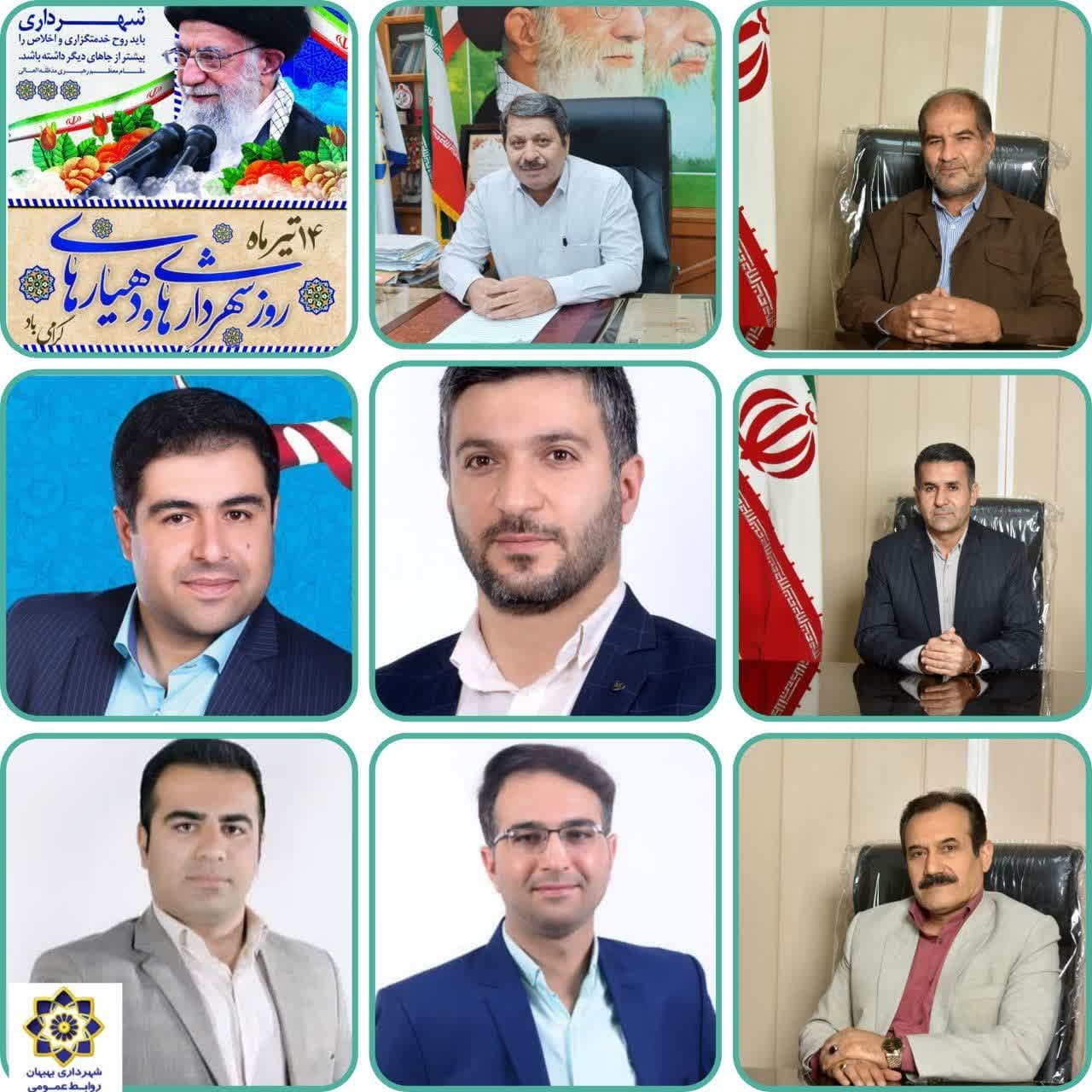 بمناسبت فراررسيدن روز ملي شهرداري ها و دهياري ها در پيامي اين روز را به كليه شاغلين در شهرداري ها و دهياري هاي كشور خصوصاً پرسنل شهرداري بهبهان تبريك گفتند.