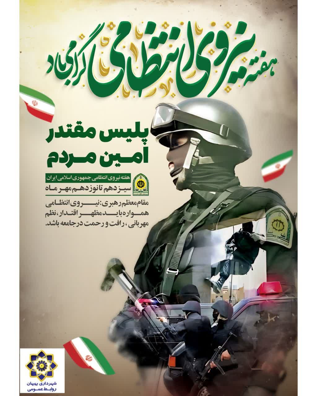 ✅پیام تبریک شهردار،رئیس و اعضای شورای اسلامی شهر بهبهان به مناسبت هفته نیروی انتظامی(فراجا)