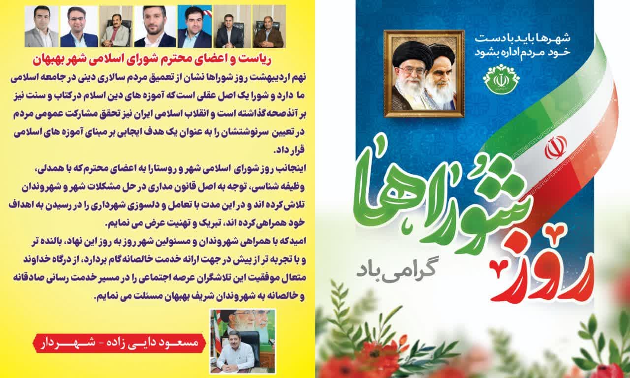 🔽اینجانب روز شورای اسلامی شهر و روستارا به اعضای محترم که با همدلی، وظیفه شناسی، توجه به اصل قانون مداری در حل مشکلات شهر و شهروندان تلاش کرده اند و در این مدت با تعامل و دلسوزی شهرداری را در رسیدن به اهداف خود همراهی کرده اند، تبریک و تهنیت عرض می نمایم.