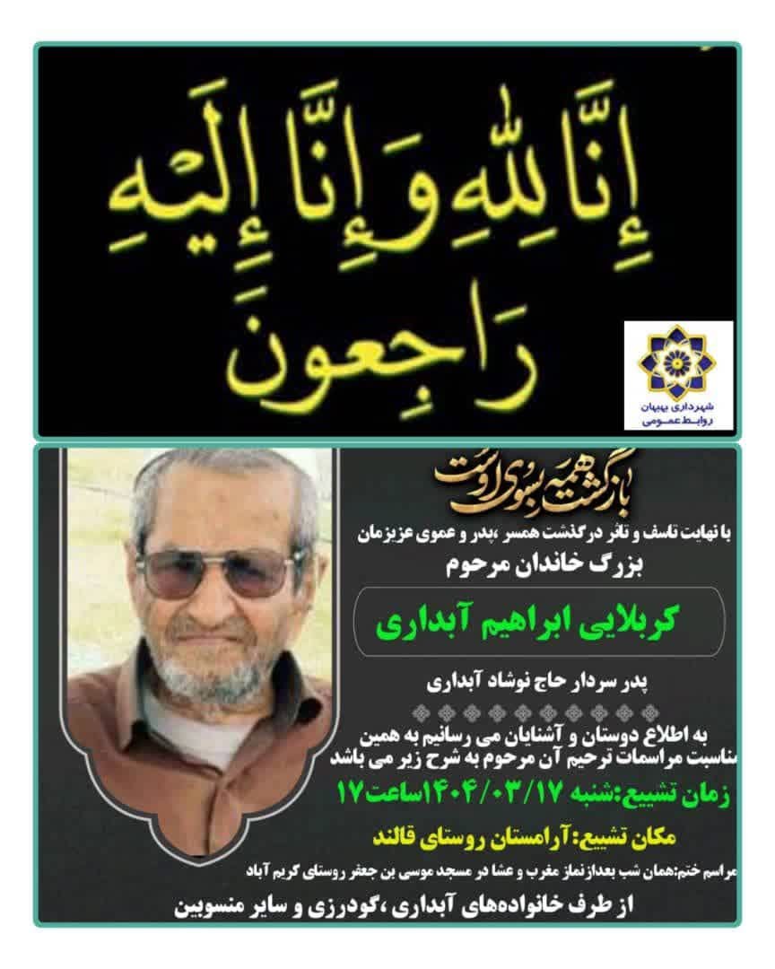 درگذشت پدر عزیزتان را به شما و خانواده محترمتان تسلیت عرض نموده،از خداوند متعال برایشان طلب مغفرت و برای شما و سایر بازماندگان صبر جزیل خواهانیم.