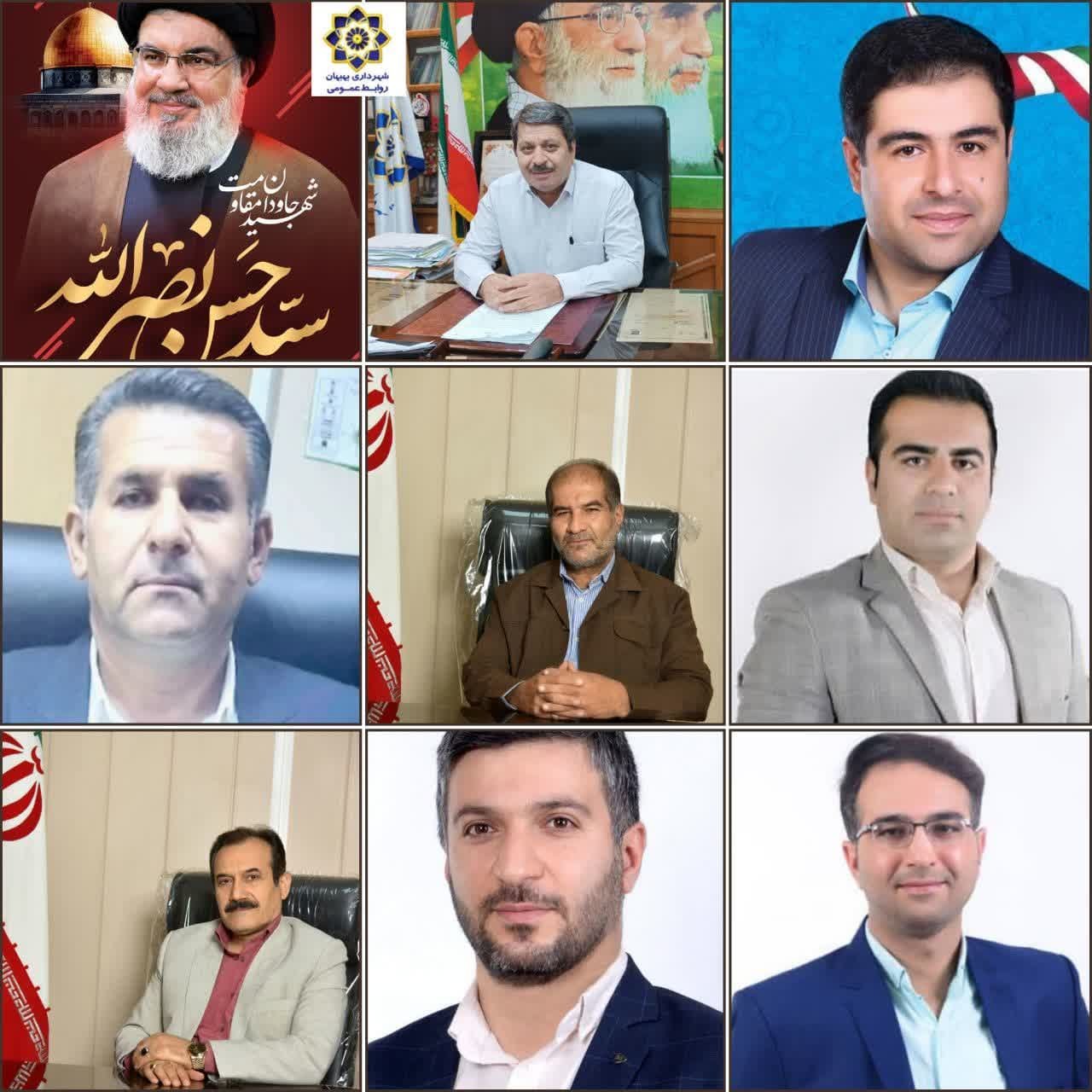شهردار و اعضای شورای اسلامی شهر بهبهان با صدور پیامی، شهادت سید حسن نصرالله و جمعی از فرماندهان مقاومت را تسلیت گفت.