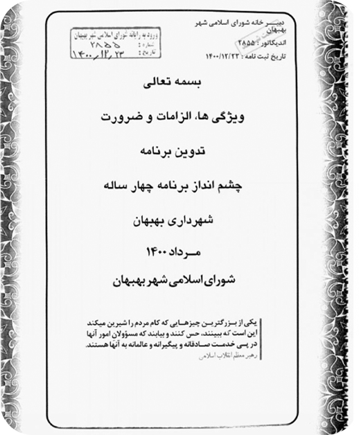 چشم انداز برنامه چهار ساله شهرداری و شورای شهر بهبهان