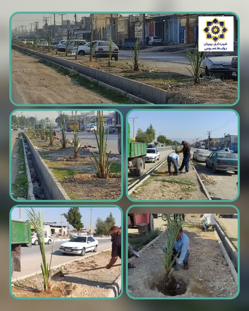 🔽مهندس دایی زاده شهردار بهبهان گفت :در راستای تقویت سرانه فضای سبز و زیبا سازی شهر و آمیخته بودن این نوع درختان با هویت و فرهنگ شهر بهبهان ، شهرداری اقدام به کاشت نخل در بلوار ورودی شهر نموده است.