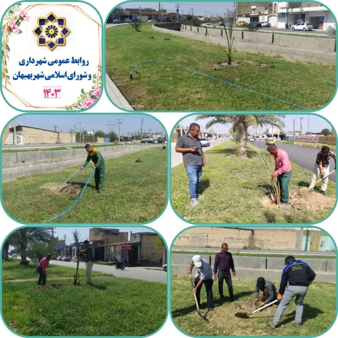 🟢 ۳۰ اصله (درخت)نخل مثمر ،در بلوار شهید پوست کن(شهرک صنعتی) و حریم کانال کوی حجت، توسط نیروهای زحمت کش فضای سبز شهرداری بهبهان کاشته شد.