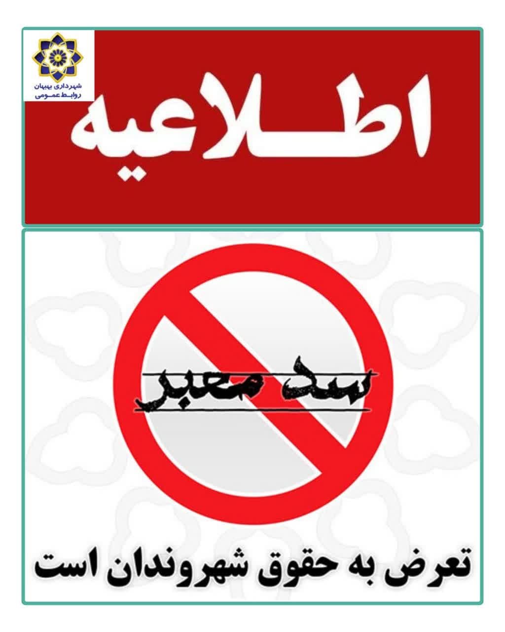 🔷 لذا از تمامی کسبه محترم درخواست می شود ضمن رعایت کامل مقررات و همکاری با خادمین خود در شهرداری،از هرگونه اشغال پیاده رو و ایجاد مزاحمت برای شهروندان خودداری فرمایند. در غیر این صورت ،واحد اجرائیات شهرداری با متخلفین برابر ضوابط و مقررات برخورد قاطع نموده و نسبت به جریمه های سنگین و جمع آوری اجناس اقدام خواهد نمود.