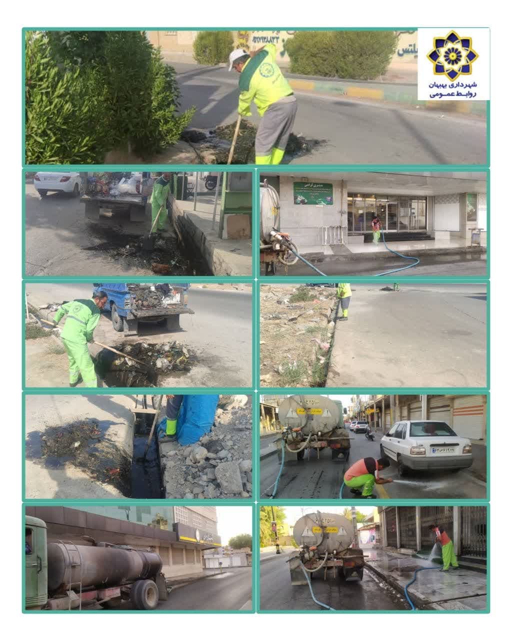 گوشه ای از فعالیت حوزه خدمات شهری شهرداری بهبهان با نظارت مهندس بهمئی معاونت خدمات شهری و مسئولین نواحی یک و دو آقایان مهندس سقاپور و مهندس قره غانی در حوزه های مختلف سطح شهر