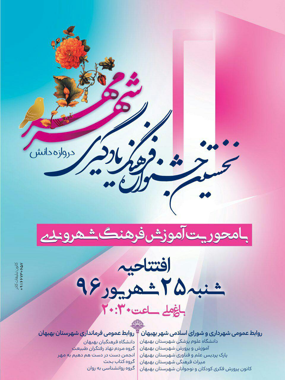 این آغاز یک مسیر است….مسیری که با همراهی مردم بهبهان می تواند تحولی در توسعه فرهنگی شهرمان ایجاد کند..همه عزیزان را به حضور در نخستین جشنواره ... ادامه مطلب