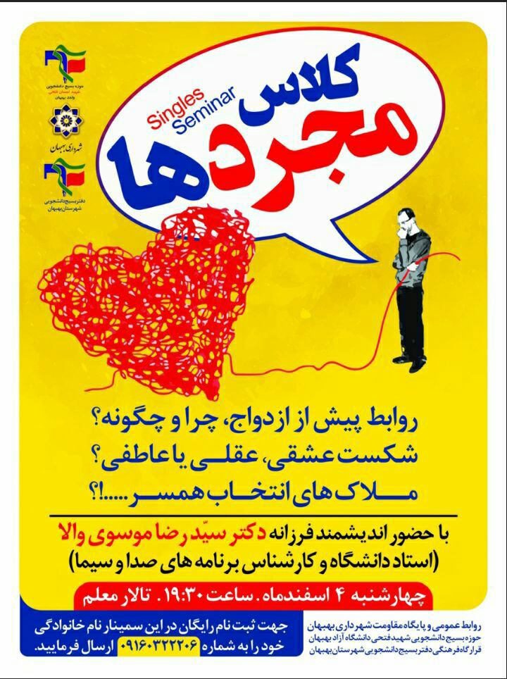 برنامه فرهنگی روابط عمومی شهرداری:سمینارمشاوره ای خانواده ویژه جوانانAdmin5 اسفند 1395برنامه فرهنگی روابط عمومی شهرداری:سمینارمشاوره ای خانواده ویژه جوانان ... ادامه مطلب