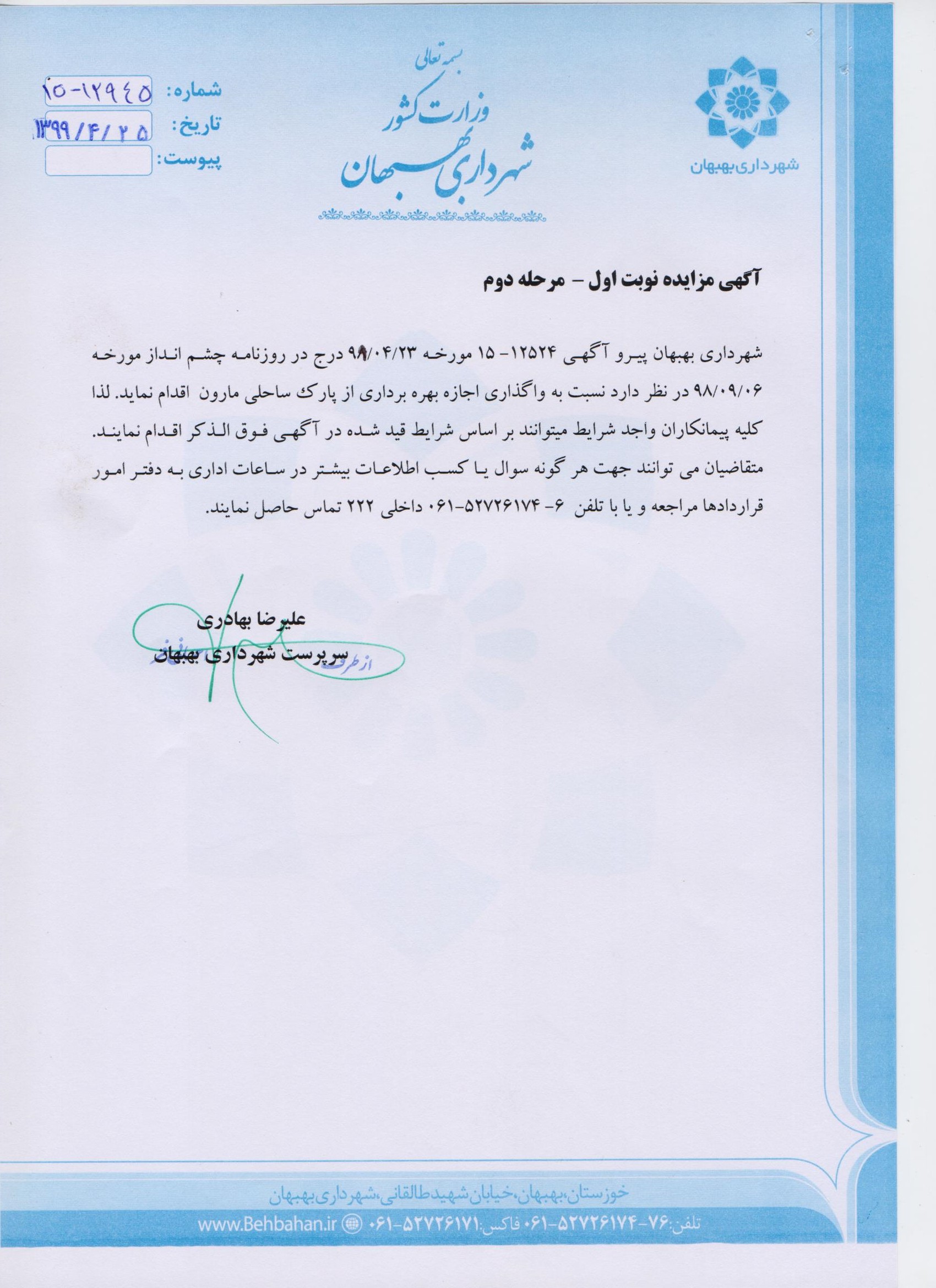 به گزارش روابط عمومی شهرداری و شورای اسلامی شهر بهبهان ، مدیر دفتر عمران و نظارت شهرداری بهبهان گفت: اکیپهای آسفالت اسفندماه سال گذشته و نیز ... ادامه مطلب