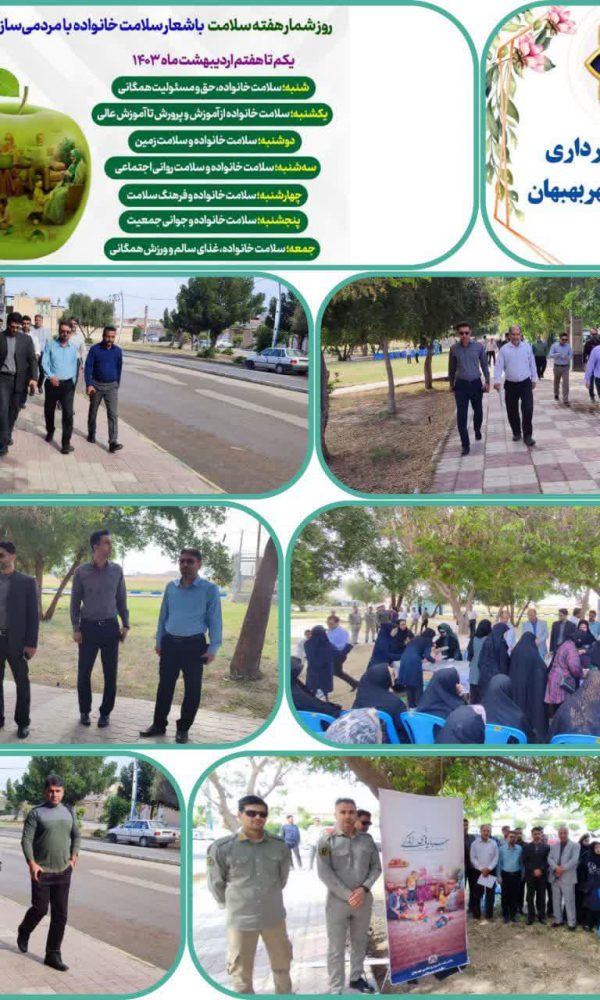 به گزارش روابط عمومی شهرداری و شورای اسلامی شهر بهبهان 🔽صبح روز چهارشنبه مورخه پنجم اردیبهشت ماه ۱۴۰۳که بمناسبت هفته سلامت روز(سلامت خانواده و فرهنگ سلامت)نامیده ... ادامه مطلب