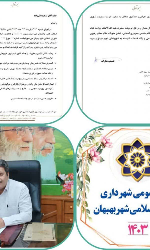 به گزارش روابط عمومی شهرداری و شورای اسلامی شهر بهبهان 🔽با حکم دکتر حسینی محراب استاندار خوزستان ، مهندس مسعود دایی زاده ،به عنوان شهردار منتخب ... ادامه مطلب