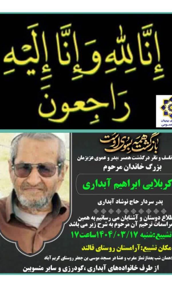 *بسم الله الرحمن الرحیم* 🏴انالله و انا الیه راجعون🏴 *سردار پاسدار، جناب آقای نوشاد آبداری* فرمانده محترم تیپ نیرومخصوص امام حسن مجتبی(ع) مشیت الهی بر این ... ادامه مطلب