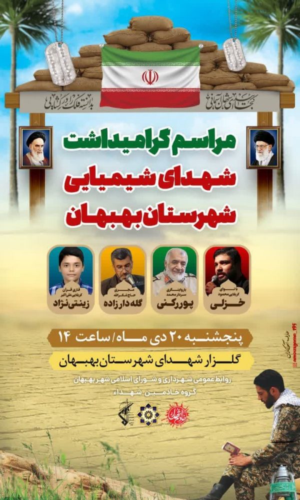 🌹 بیست و هفتمین مراسم گرامیداشت شهدای شیمیایی شهرستان بهبهان توسط مجموعه شهرداری و با همکاری گروه خادمین شهدای (ناحیه مقاومت بسیج)برگزار میشود . 👈زمان :پنج ... ادامه مطلب